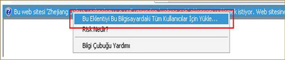 Yayıya tıklayınca Açılan menüden Bu eklentiyi Bu bilgisayardaki Tüm kullanıcılar için yükle seçeneğine tıklayın.